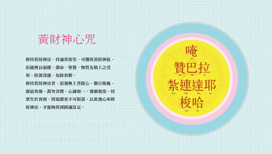 紅財神心咒:嗡,藏巴拉,藏鍊札呀,達拿美迪,舍梭哈