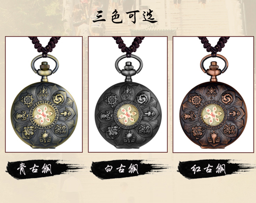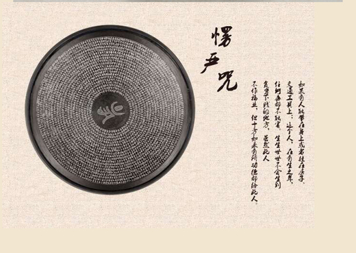 楞嚴(yán)咒懷表汽車掛飾精致小巧,但俗話說“麻雀雖小,五臟俱全”,本身雖小,但是它的結(jié)構(gòu)可不簡單,表盤刻有八吉祥圖;為別為寶傘、雙魚、寶瓶、蓮花、右旋白海螺、如意結(jié)、寶幢、八幅金輪,具有深刻寓意的吉祥象征物。最核心層用梵文“嗡”,嗡字代表清凈法身比盧遮那佛,次層用“悉怛多缽怛羅”楞嚴(yán)心咒,象征著遮蔽魔障。此層用五大咒心。外層用34個(gè)梵文楞嚴(yán)咒心,顏色也具備殊勝法味;分別以紫光、赤光、白光,中央法身佛更有代表性楞嚴(yán)咒表盤.....,如果有人能戴在身上或掛在房子、交通工具上;這個(gè)人有生之年任何災(zāi)難都將遠(yuǎn)離他(詳見楞嚴(yán)咒懷表汽車掛件)