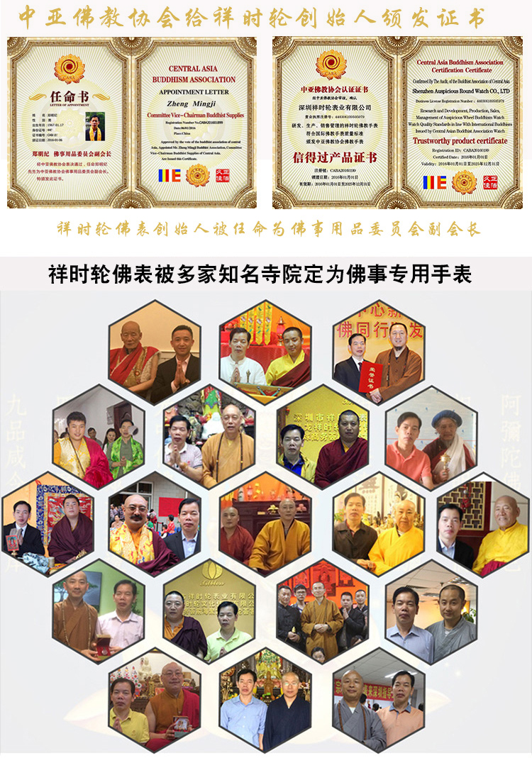 著于身、觸于手、藏于家可逢兇化吉,遇難呈祥;表芯無始無終轉(zhuǎn)動(dòng)不息,威力無比;時(shí)光與佛法律動(dòng),分分秒秒佛佑相伴。一切所求,無不滿足。